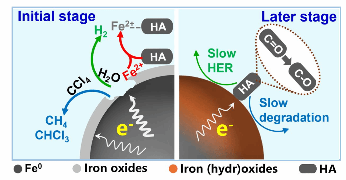 HA对CMC-nZVI脱氯的双重影响机制