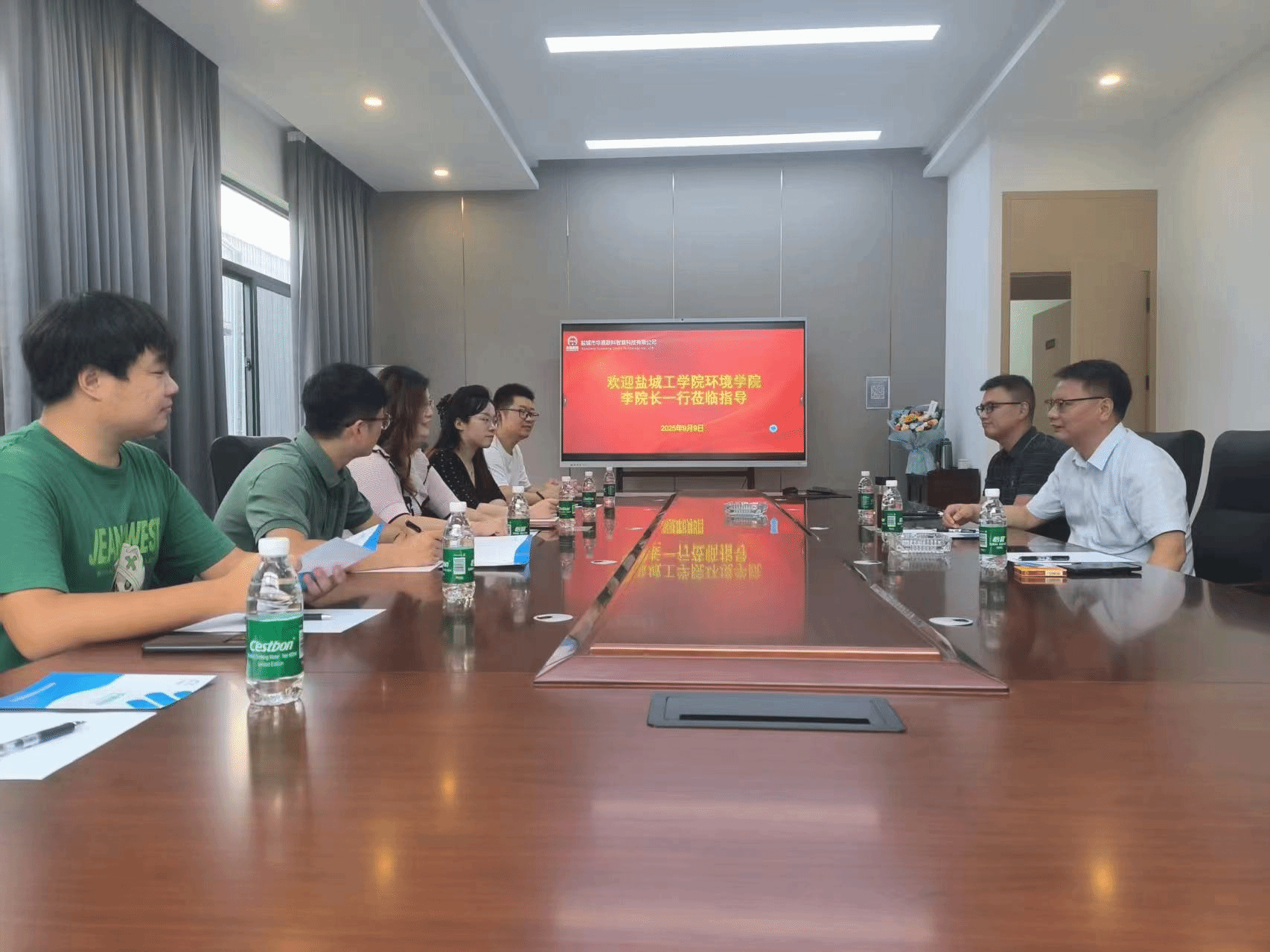 9月9日,williamhill英国官网副经理李璇率队前往盐城市华晟联科智慧科技有限公司,向公司企业导师李大胜总经理表示慰问和感谢,环保设备工程专业系主任张麓岩、环境工程系副主任杨亚冬、环保设备工程专业系教师马卫星及部分研究生代表参加此次活动。