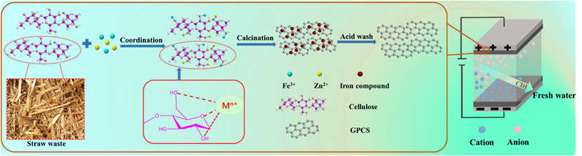 另外,王慧博士的研究论文《Efficient removal of metal ions by capacitivedeionization with straw waste derived graphiticporous carbon nanosheets》于环境领域国际公认的TOP学术期刊《EnvironmentalScience:Nano》发表。2019年该杂志的影响因子为7.42。该论文提出以生物质废弃物为碳源,利用活化同步石墨化的方法,制备了石墨化多孔碳纳米片,其高比表面积高达2694m2/g,且具有较高的石墨化程度,将其用于电容去离子技术的电极材料提升了水中金属离子的电吸附容量,同时也提高电流效率。