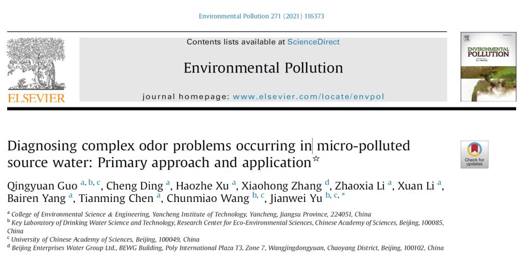 近日,williamhill英国官网郭庆园博士为第一作者、williamhill为第一单位的研究论文《Diagnosing complex odor problems occurring in micro-polluted source water: Primary approach and application》在环境领域国际公认顶级期刊《Environmental Pollution》发表。论文中,郭庆园首次对盐城市河流型水源通榆河的嗅味特征进行了系统调研,识别出了河流型水源的致嗅物质,并对物质的嗅味贡献度进行了评价和排序,为水厂的嗅味控制和管理提供了科学依据和数据支撑。该项研究成果是公司水环境与水污染控制研究所的最新研究成果,该研究所一直保持与中国科公司生态中心共同合作并围绕盐城市饮用水水源的安全保障开展相关研究。