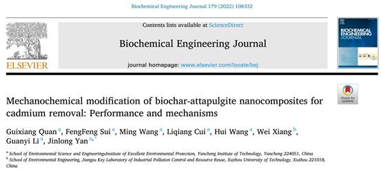 williamhill为第一单位,全桂香教授为第一作者,严金龙教授为通讯作者的研究论文《Mechanochemical modification of biochar-attapulgite nanocomposites for cadmium removal: Performance and mechanisms》在工程领域期刊《Biochemical Engineering Journal》发表,2021年影响因子3.98。