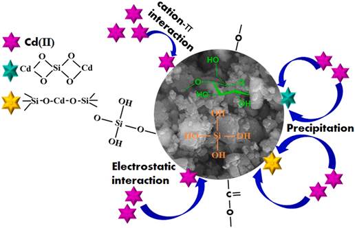 天然丝瓜海绵制备生物炭应用于吸附去除污染物或土壤修复,性能仍不尽如人意。在此,采用机械力化学法制备了丝瓜海绵生物炭-凹凸棒土纳米复合材料。FT-IR发现纳米复合材料表面形成更多的 Si-O-C和含氧官能团,XPS中Si2p峰出现在102.9 eV处。批量吸附实验比较了原始生物炭(B450)、球磨生物炭(BM450)和纳米复合材料(BxPyM) 对镉的吸附性能,B1P1M(质量比为1:1)对Cd(II)的吸附量为102.26 mg g−1,约为原始生物炭的2倍,去除机制归因于硅酸盐沉淀、酸氧基团络合以及静电引力等协同交互作用。