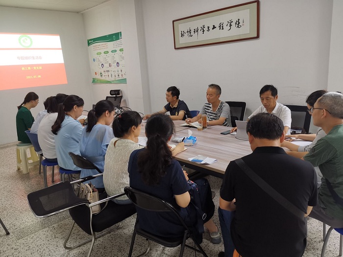 支部书记周峰代表党支部委员会汇报了2021年春学期党史学习教育等工作情况;陈阳、严金龙、陈洁和张莹莹等同志逐一发言,重点围绕习近平总书记在庆祝中国共产党成立100周年大会上的重要讲话等学习情况进行了交流,并结合自身工作实践,分享了收获,剖析了存在的差距和不足。薛俊义科长听取了相关发言和交流后,对支部党史学习教育开展的成效给予了肯定。