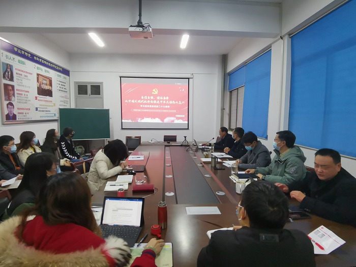 11月30日下午,在建军东路校区williamhill英国官网会议室,公司党委宣讲团成员、公司党委第三巡学旁听组组长田为龙为williamhill英国官网全体教职工作学习贯彻党的二十大精神专题宣讲,公司党总支书记陈阳主持,公司全体教职工通过线上线下参加。