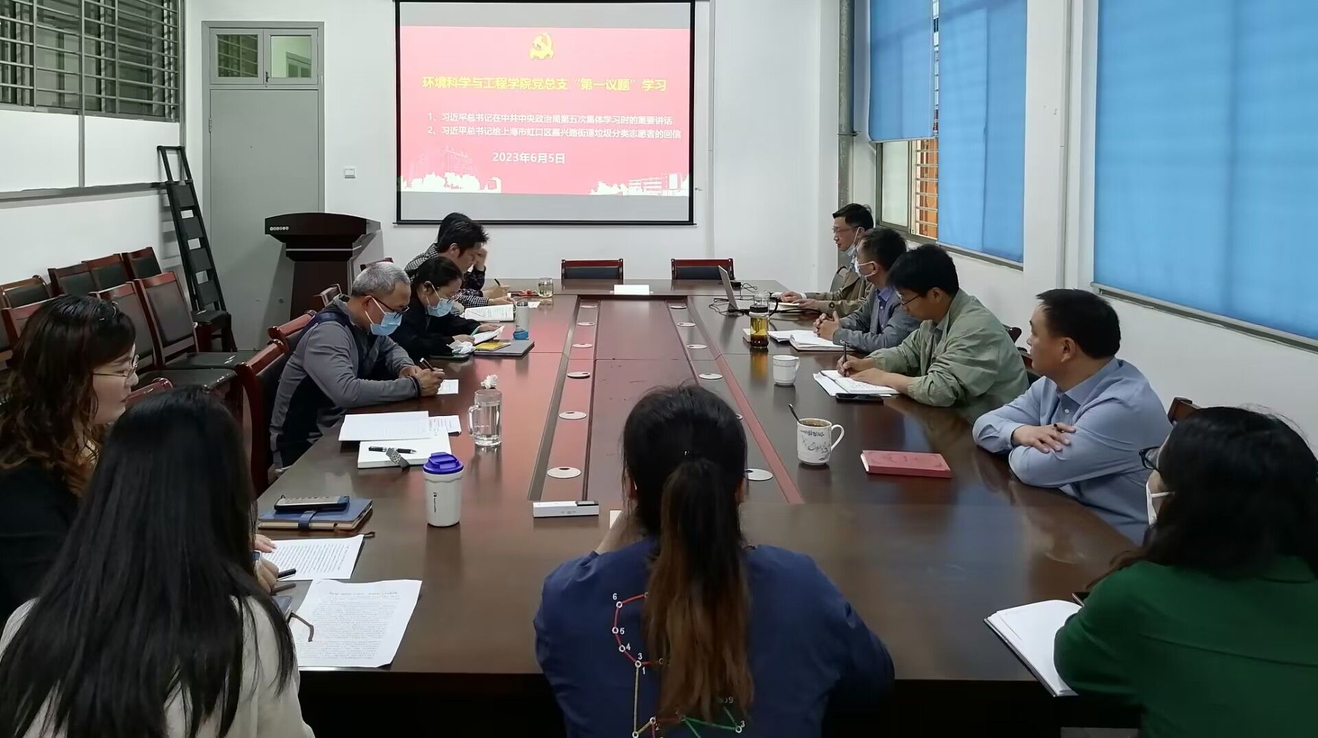 6月5日上午,在公司会议室,公司党总支委员会以“第一议题”形式,认真学习习近平总书记在中共中央政治局第五次集体学习时的重要讲话精神、给上海市虹口区嘉兴路街道垃圾分类志愿者精神。公司党总支书记陈阳主持,副经理陈天明(主持工作)、副书记周政、副经理杨百忍及公司党总支理论学习组成员参加。