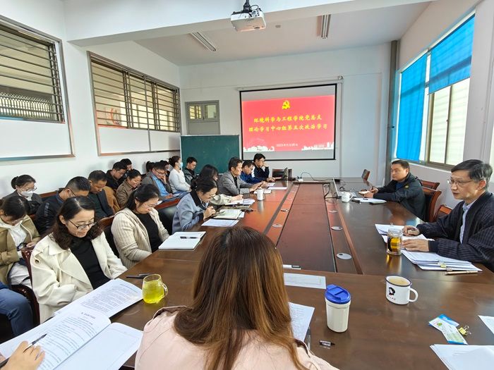 11月8日下午,在北校区老员工活动中心三楼williamhill英国官网会议室,公司召开2023年秋学期第五次教职工政治学习,会议由党总支副书记周政主持,环工系副主任郭雪洁领学,公司全体教职工参加。