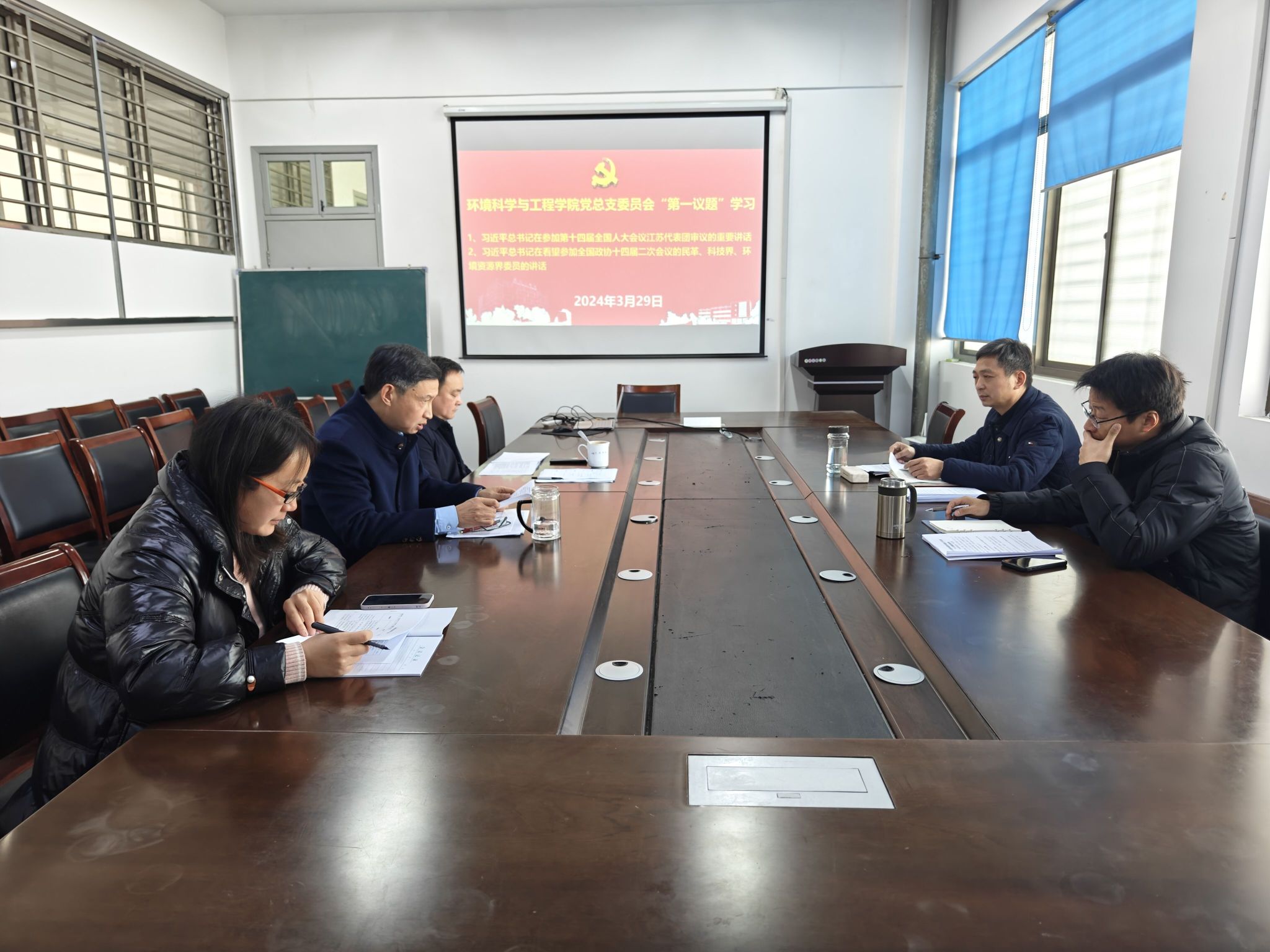 3月29日上午,在北校区williamhill英国官网会议室,公司党总支委员会“第一议题”学习习近平总书记在参加十四届全国人大二次会议江苏代表团审议时、在看望参加政协会议的民革科技界环境资源界委员时的重要讲话精神。会议由公司党总支书记陈阳主持,总支全体委员参加。