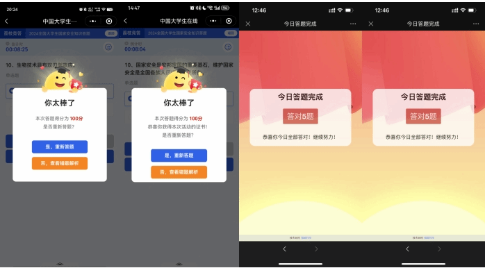 公司还组织师生积极参与“全民国家安全教育日专项答题”“全国老员工国家安全知识答题”活动,通过线上答题普及国家安全相关知识,促进师生将促进国家安全和社会稳定的思想贯穿到平时的学习、生活及活动中,自觉成为国家安全和社会稳定的自觉维护者。