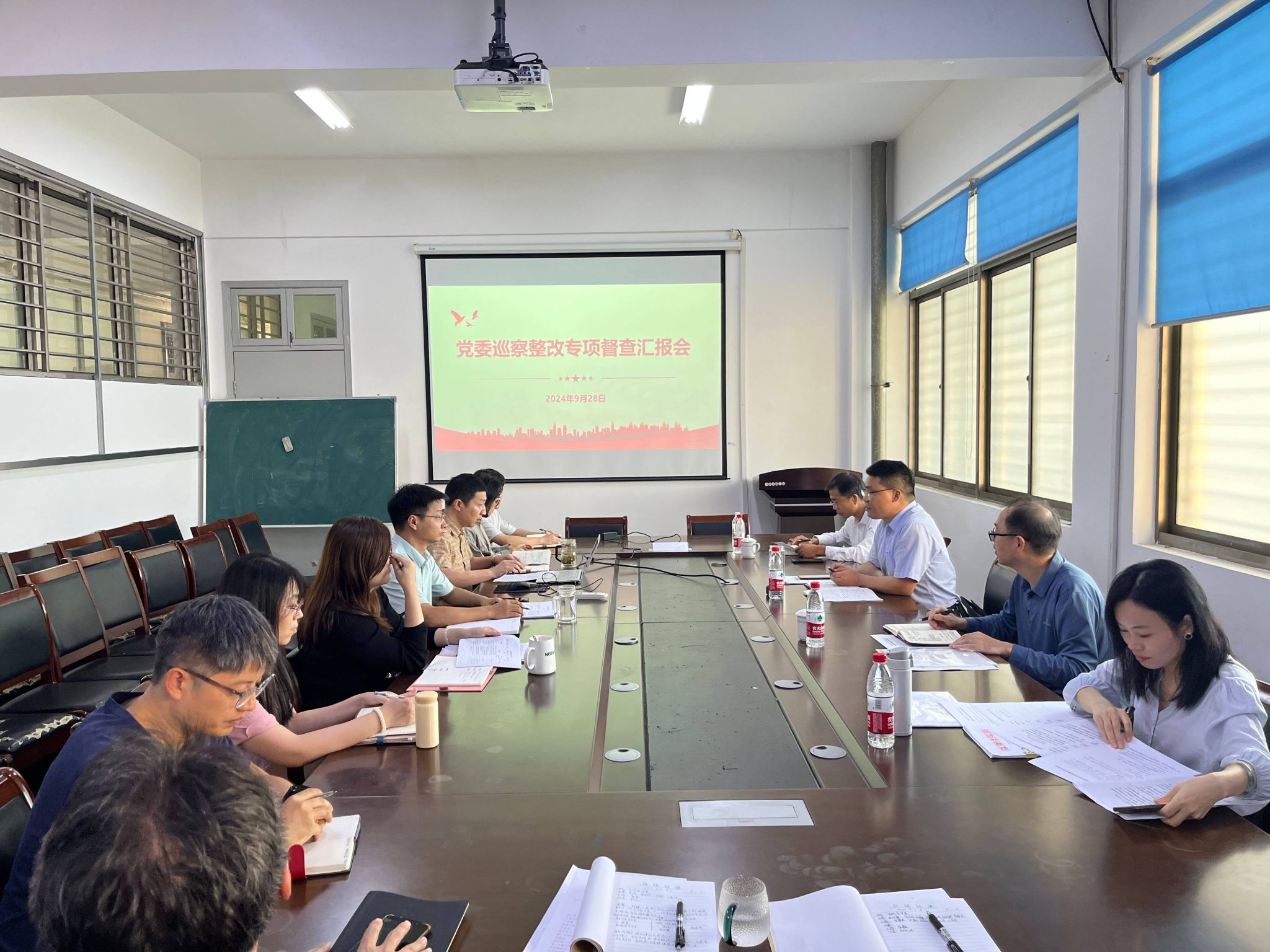 9月28日下午,在北校区老员工活动中心三楼会议室,公司召开巡察整改工作进展汇报会。巡察整改专项督察第二组组长、校纪委副书记吴登国率领校信息化办公室主任王益群、信息工程公司党委副书记王源、实验设备处桑静静科长等3位组员到公司调研督导巡察整改工作。经理陈天明、副经理李璇出席,各科室负责人参加。党总支书记孟鑫主持。
