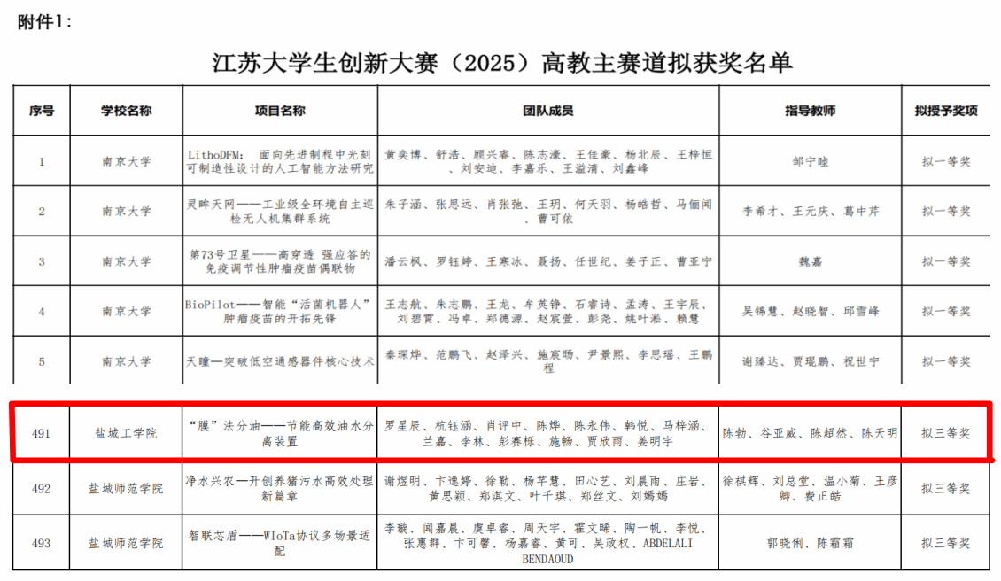 经过层层选拔,公司陈勃老师为指导老师带队,环境科学专业23级本科生罗星辰同学为项目负责人,连同杭钰涵、肖评中、陈烨、马梓涵、兰嘉、李林、彭赛栎、姜明宇、陈永伟、韩悦、施畅、贾欣雨及姜明宇十三位同学共同申报的高校主赛道“膜”法分油—节能高效油水分离装置项目脱颖而出,荣获省赛三等奖。这是公司在本次大赛中唯一获得奖项的团队,为公司和公司争得了荣誉!