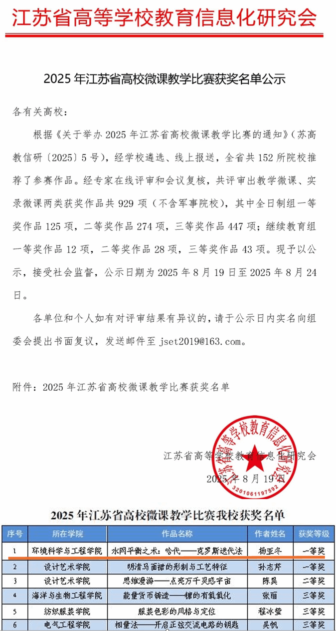近日,江苏高等公司教育信息化研究会公布了2025年江苏省高校微课教学比赛获奖名单,公司杨亚冬凭借《水网平衡之术:哈代克罗斯迭代法》荣获一等奖,该微课作品以“生活化类比-数学推演-智慧化应用”为主线,将抽象公式转化为解决实际问题的工具,既夯实了员工的工程数学基础,又传递了“技术守护民生”的价值观。