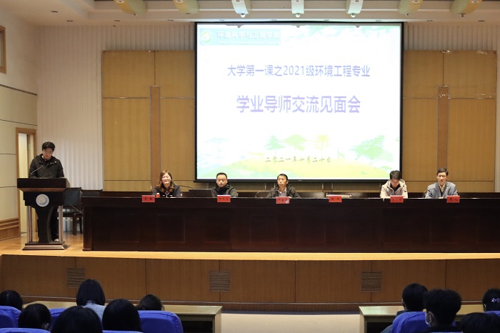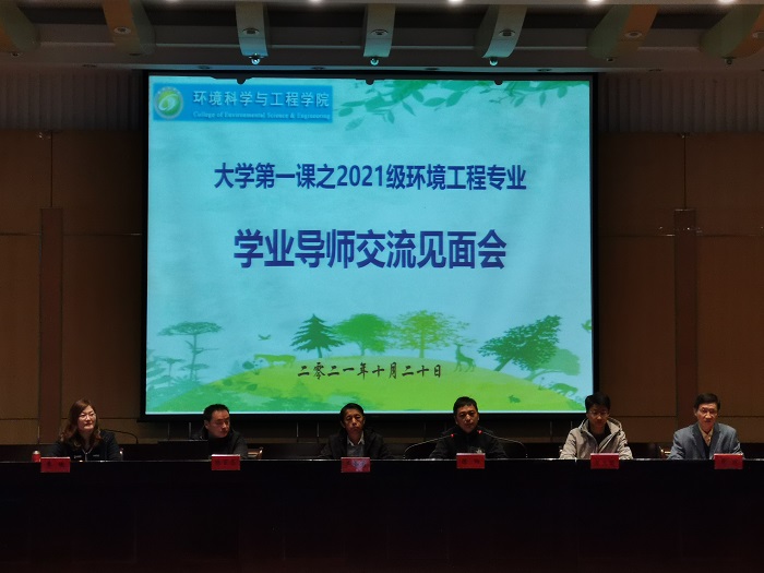 10月20日下午,williamhill英国官网在北校区图书馆报告厅召开2021级环境工程专业新生学业导师见面会。经理严金龙、党总支书记陈阳、党总支副书记周政、副经理陈天明、杨百忍、环境工程系全体专业教师、新生辅导员以及2021级环境工程专业全体本科生参加活动。会议由周政主持。