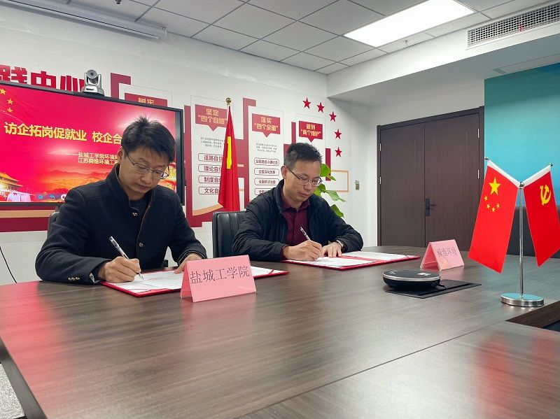 江苏舜维环境工程有限公司创始人钱进与williamhill英国官网副经理(主持人)陈天明签约产学研合作基地