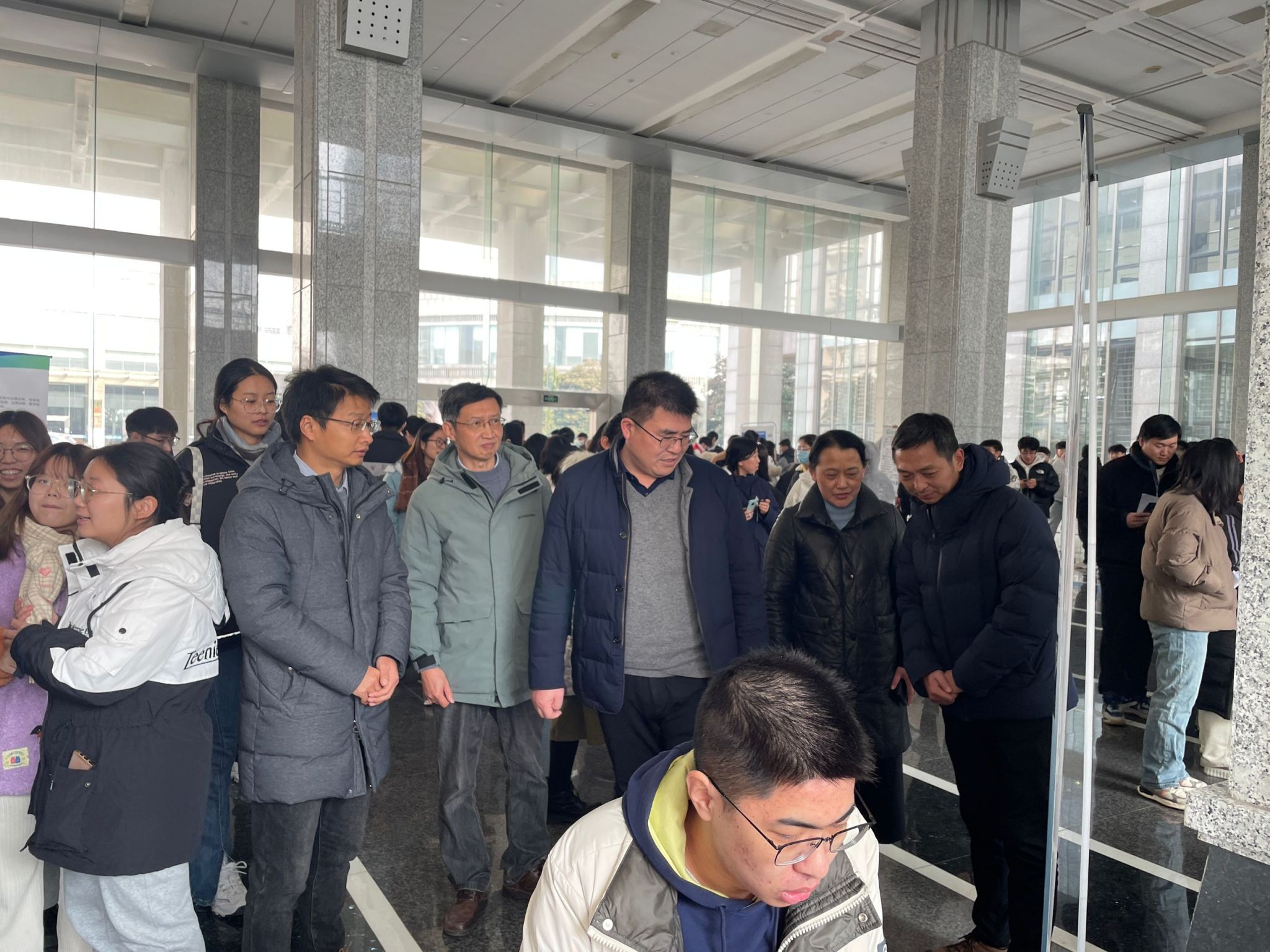 为深入学习贯彻党的二十大精神,认真落实党中央、国务院“稳就业”“保就业”决策部署, 12月27日,williamhill英国官网在北校区化工楼一楼大厅开展“绿创未来”2024届毕业生专场招聘会。党委常委、副董事长张勤芳、校招生与就业创业指导处处长徐新华现场指导。公司领导班子成员、学工办、分团委负责同志、全体导师、2024届本科毕业生与研究生参加。
