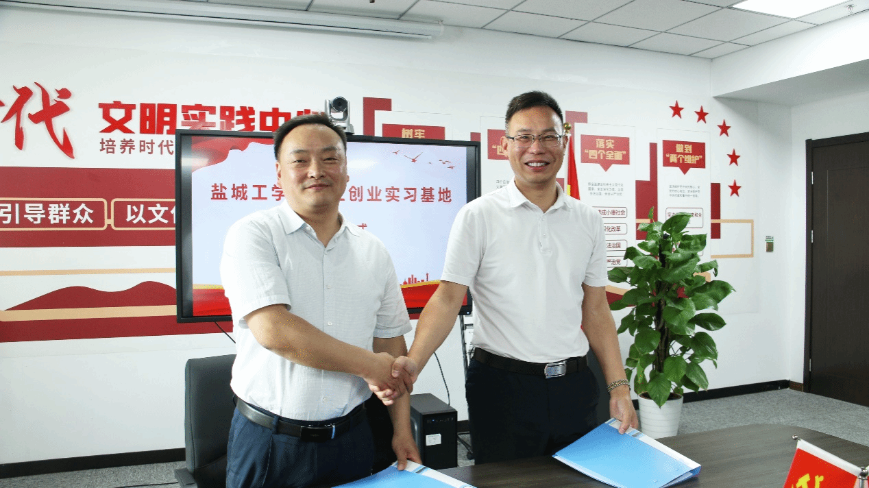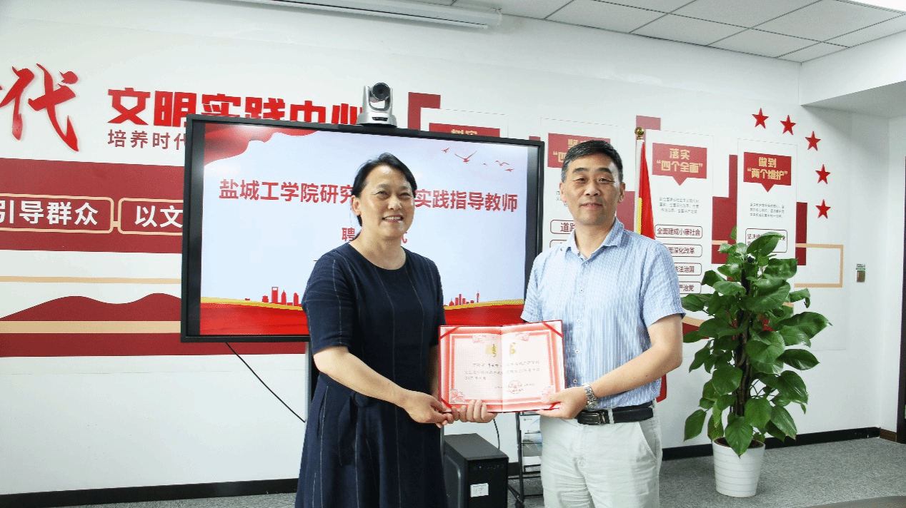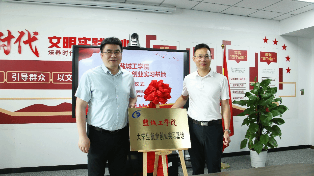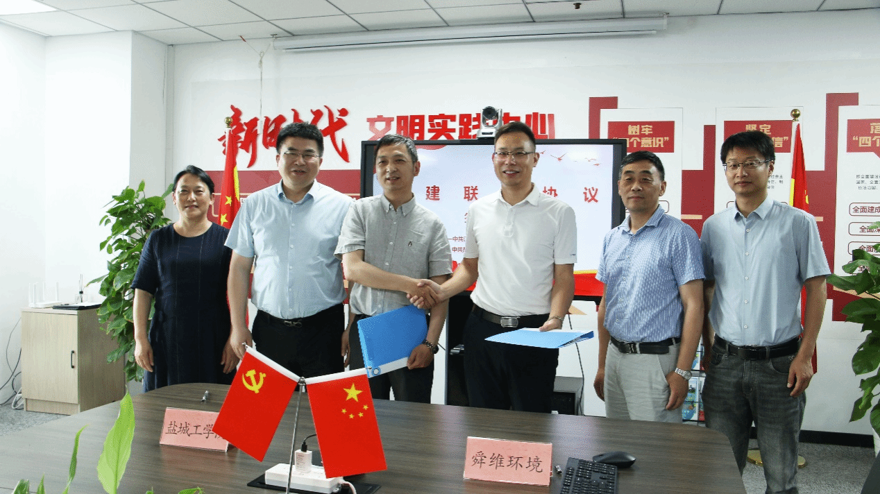 张勤芳为江苏舜维环境工程有限公司老员工就业创业实习基地授牌,徐新华颁发研究生校外实践指导教师聘书,陈阳与企业党支部签订党建联盟协议,杨百忍与企业签订老员工就业创业实习基地共建协议。