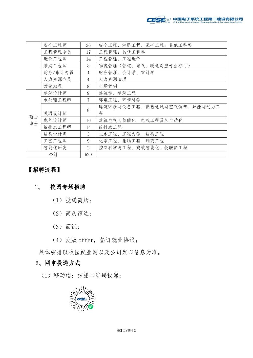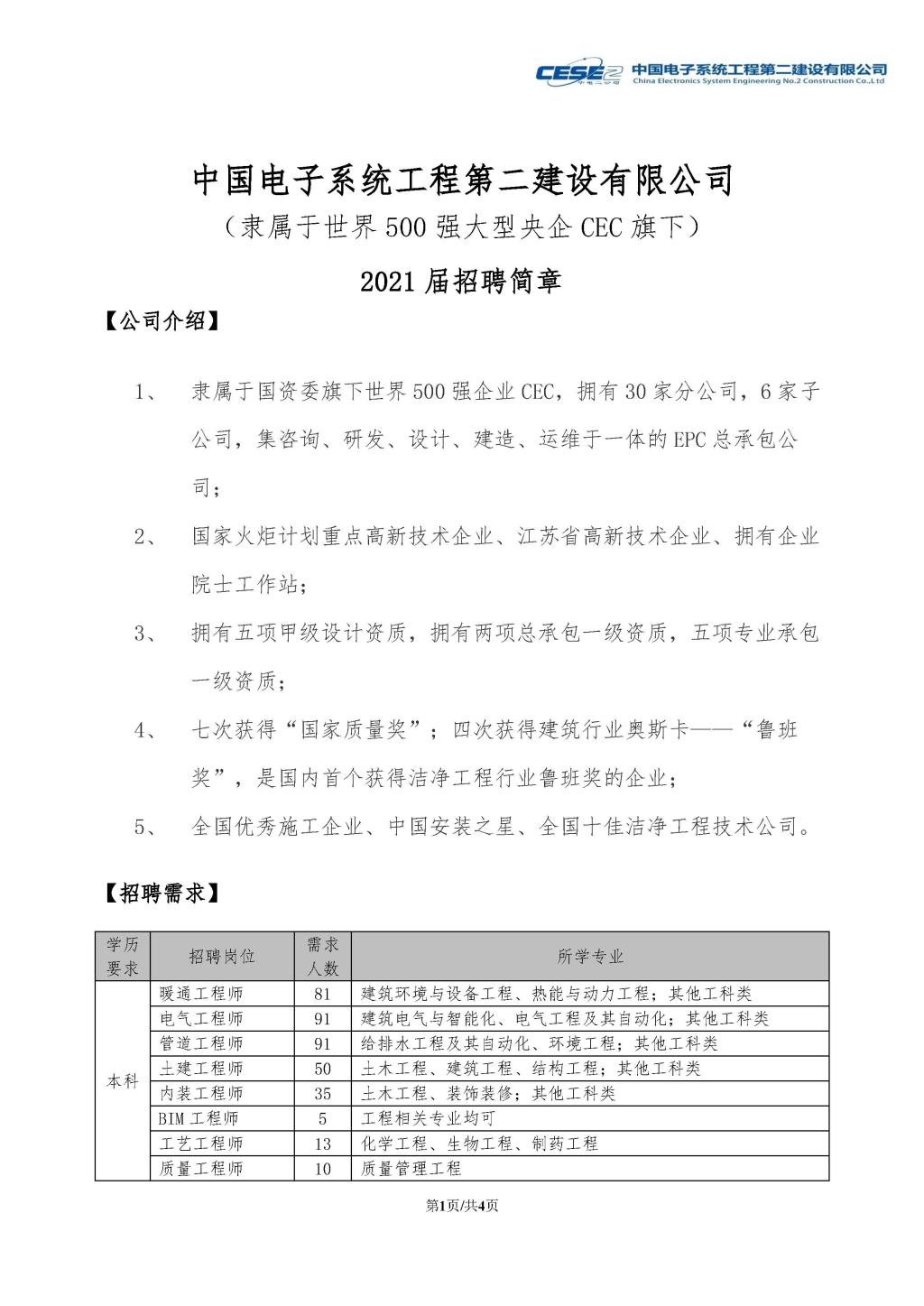 【校园招聘】中国电子系统工程第二建设有限公司招聘简章