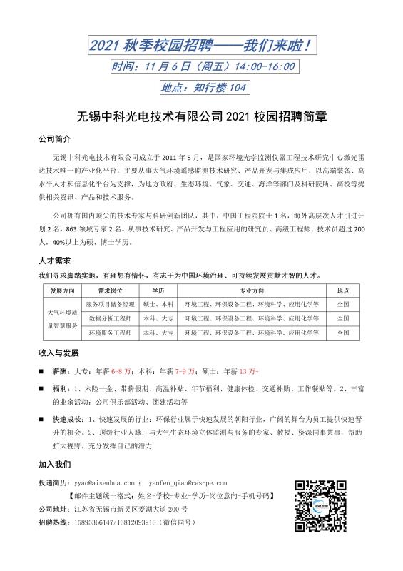 【校园招聘】无锡中科光电技术有限公司招聘简章