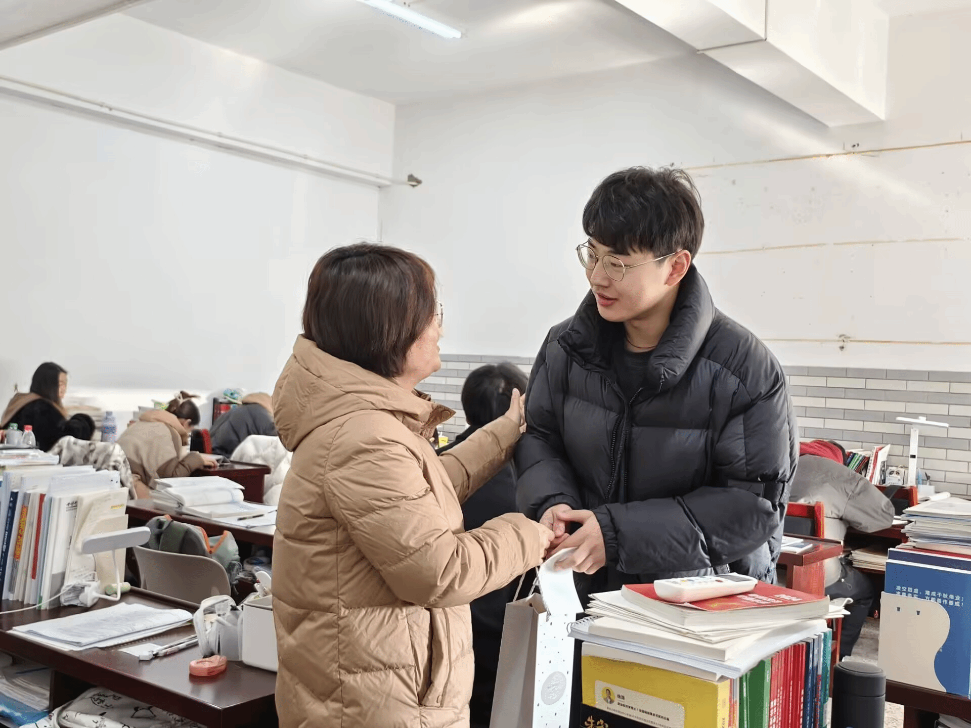 为帮助考研学子增强信心,缓解备考压力,12月15日,williamhill英国官网开展2025届考研学子慰问活动。公司党总支副书记王丽坤、员工工作办公室主任沈丹、毕业班辅导员王翔分别在北校区知达楼、行远楼教室慰问考研学子。