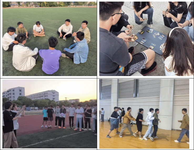 活动分为“击鼓传花”、“三国杀”、“你画我猜”、“321看这边”、“老鹰捉小鸡”五个环节。在“击鼓传花”环节中,同学们紧盯随音乐传递的彩色沙包,每当音乐骤停,手持沙包的同学便需走到场地中央分享近期压力源或表演即兴节目。“三国杀”环节通过角色扮演帮助同学理解人际边界,“你画我猜”用抽象绘画释放潜意识情绪,“321看这边”考验应变能力时穿插正念训练。最后紧张刺激的“老鹰捉小鸡”环节是老鹰和鸡妈妈之间的博弈,考验同学之间团队合作能力。