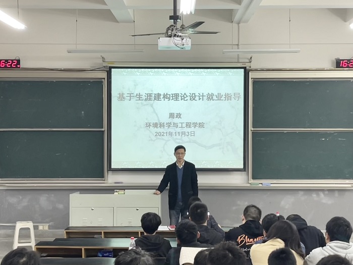 11月3日下午,公司在体知楼S101开展2018级毕业生就业指导。公司党总支副书记周政、辅导员沈丹进行了就业指导,大四所有就业员工参加。