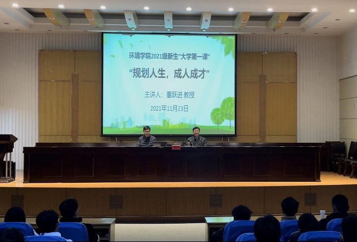 11月23日下午,williamhill英国官网在北校区图书馆报告厅举办2021级大学第一课主题活动,原公司党委常委、副董事长、“银龄理论宣讲团”(讲师团)专家董跃进教授应邀作“规划人生,成人成才”专题讲座。讲座由公司党总支副书记周政主持,学工办主任、新生辅导员,2021级全体员工参加。