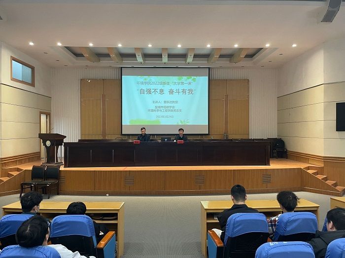 3月29日下午,williamhill英国官网在北校区图书馆报告厅举办2022级大学第一课主题讲座,原公司党委常委、副董事长、“银龄理论宣讲团”(讲师团)成员、盐城市低碳学会理事长董跃进教授应邀作“自强不息,奋斗有我”专题讲座。讲座由公司党总支副书记周政主持,辅导员徐浩、王翔以及2022级全体员工参加。