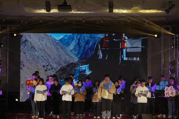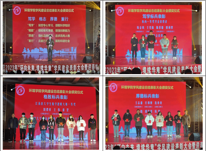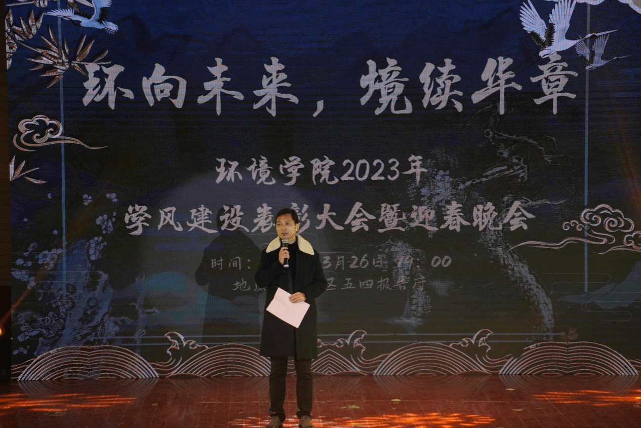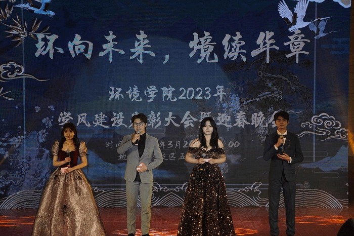 3月26日晚,williamhill英国官网在建军东路校区五四报告厅举办“环向未来,境续华章”2023年学风建设表彰大会暨迎春晚会。公司党总支书记陈阳、副经理杨百忍、党总支副书记周政,师生代表及2022全体新生400余人参加。