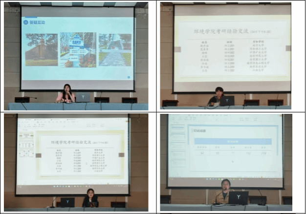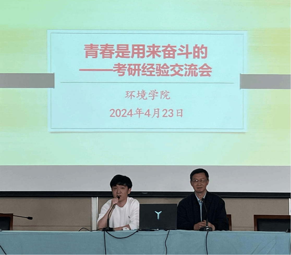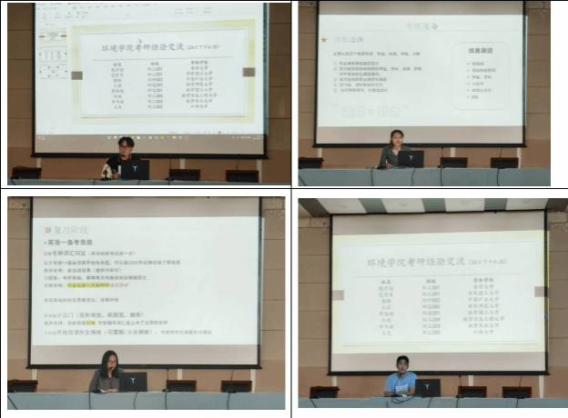 随后,8位考研取得优异成绩的同学回顾自己考研路程上的经历,总结考研学习办法,分享考研心得。考取南京大学的魏子强介绍自己在备考阶段如何进行规划,并分享了自己在专业课、数学等科目上的学习要点;考取华东理工大学的范青青建议同学们在考研复习过程当中养成复盘的好习惯,有助于加深对困难知识的理解,一步一个脚印,才能不断前进;考取中国矿业大学的魏畅向同学们讲述了在复习过程中可能会面临的心理困难,要学会与焦虑等负面情绪共处,及时调整好心态;考取南京师范大学的王芸提醒同学们考研不仅是一场对知识和能力的考验,更是一场对毅力和意志的考验,要想考研上岸,最重要的是要坚持,学会将压力化为动力;考取南京理工大学的蒋浩南向同学们指出择校是考研成功的一大关键因素,要结合自身优势与劣势科目,选择合理的报考目标,提高报考的成功率;考取南京信息工程大学的冷琪向同学们讲述提前了解考研信息的重要性,要提前了解目标院校的专业课及每年录取线和报录比,摸排目标院校的竞争难度,合理制定目标;考取南京农业大学的李韦杰分享自己与学业导师交流的经历,建议同学们在专业课或基础课程中要积极向学业老师咨询或请教;考取江南大学的王亮提醒同学们在学习过程中需注意劳逸结合,尤其在11、12月份的冲刺阶段适当延长学习时间的同时,还需注意休息,给自己适当的放松和鼓励有助于坚持到最后。