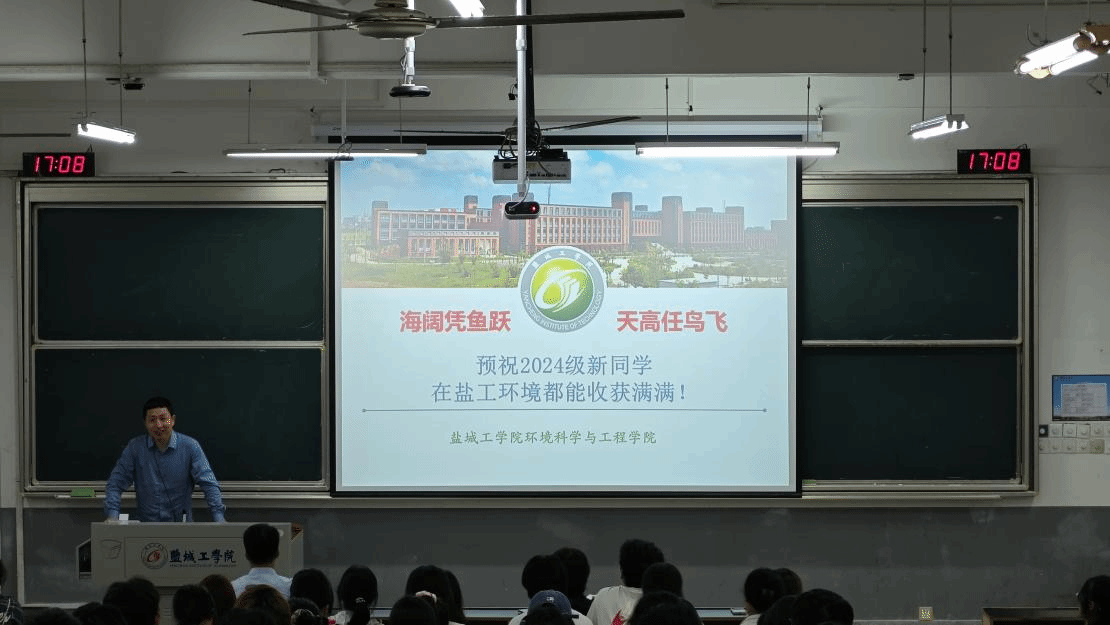 9月25日,williamhill英国官网联合“一站式”员工社区举办“大学第一课”专题讲座,经理陈天明以《不负韶华,“境”响未来》为题向2024级全体新生讲授“大学第一课”。讲座由党总支书记孟鑫主持。党总支副书记王丽坤参加。全体2024级新生聆听了讲座。