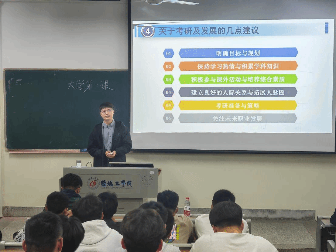 周峰介绍了环境科学专业历史前沿、培养方案、团队队伍及毕业去向等,展示了学长学姐的优秀成长案例,希望同学们以他们为榜样,实现自我成长。远野介绍了环保设备工程专业发展前景及研究热点,希望同学们做环保设备与人工智能化交叉人才,脚踏实地,努力学习专业知识,追求卓越,勇攀学术科研高峰。郭雪洁介绍了环境工程专业人才培养、团队力量、实践平台、学业导师制等方面的内容,希望同学们从国家战略需求出发,结合盐城地方产业特色,做好职业生涯规划。张麓岩为同学们介绍了公司历年来的考研情况,鼓励同学们树立考研的目标,积极备考。