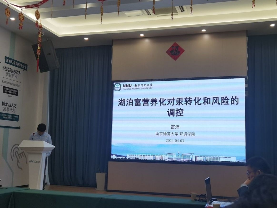 雷沛副教授做了题为“湖泊富营养化对汞转化和风险的调控”的学术报告。雷教授在报告中,分享了汞在湖泊水体中的生物转化机制,并对其毒性风险进行分析。雷教授还展望了碳达峰与碳减排期间二氧化碳浓度对水中汞生物转化的影响。在师生交流环节中,陈经理指出,雷教授为深入研究"有机质组成汞甲基化微生物甲基化"动态耦合作用关系,对我国典型富营养化湖泊(巢湖、东湖和滇池)进行研究,重点关注不同富营养化情景下藻源性有机质对甲基汞生成的影响,探究有机质关键组分对汞甲基化的调控作用,揭示不同汞甲基化微生物对藻源性有机质的响应机制。